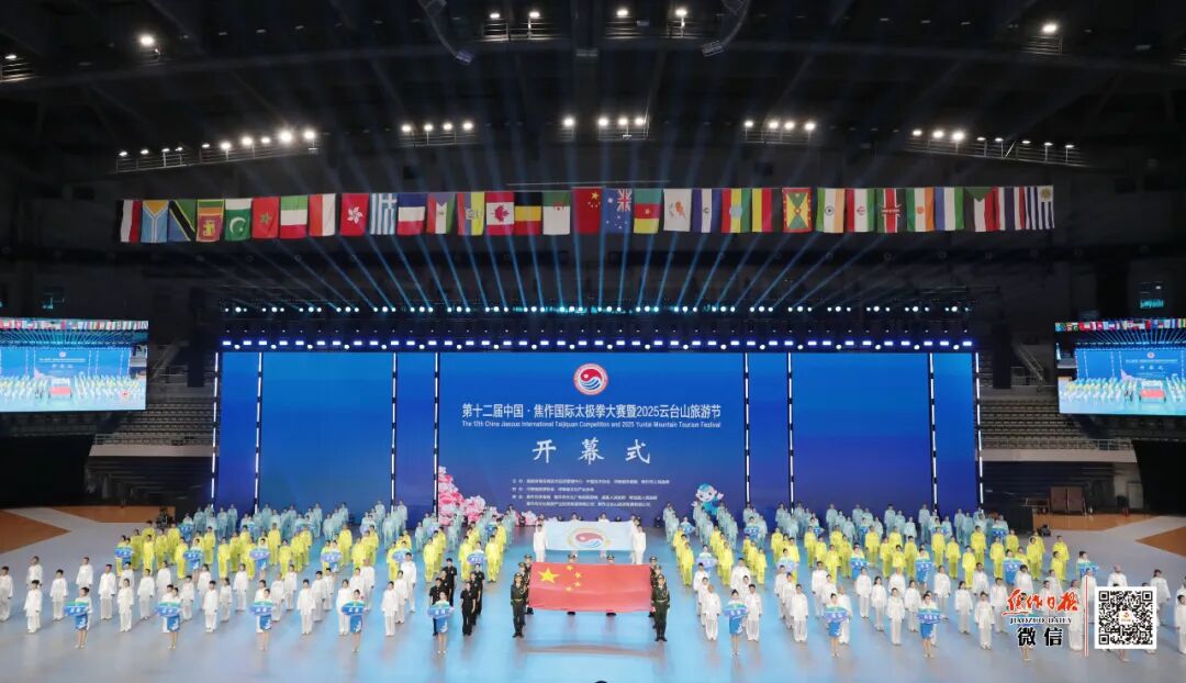 云台山水喜迎天下宾朋,以武会友共享太极盛会。9月15日晚的市太极体育中心灯火辉煌、流光溢彩,由国家体育总局武术运动管理中心、中国武术协会、河南省体育局、焦作市人民政府主办,河南省旅游协会、河南省文化产业协会协办的第十二届中国·焦作国际太极拳大赛暨2025云台山旅游节在这里隆重开幕。 9月15日晚,第十二届中国·焦作国际太极拳大赛暨2025云台山旅游节开幕式在市太极体育中心举行。图为开幕式现场。 省委常委、宣传部长王崧出席并宣布开幕,省人大常委会副主任苏晓红、省政协副主席戴柏华出席,国家体育总局武术运动管理中心主任、党委书记张玉萍出席并讲话。中国旅游协会会长、中国旅游协会企业家委员会主任、北京市人民政府原副市长段强,中国旅游协会副会长、中国旅游协会专家委员会主任、原国家旅游局副局长杜一力,省政府副秘书长赵学东,新华社河南分社副社长、总编辑林嵬,省文化和旅游厅厅长黄东升,省体育局局长马宇峰,省广播电视局局长曹新博,省文物局局长任伟,省发展改革委副主任夏志胜等出席开幕式。 市委书记李亦博致欢迎词,市委副书记、市长刘冰主持开幕式。市领导惠康、李民生、宫松奇、闫小杏、袁家超、董炳麓、王朝杰、吴军、程宝成等和部分副厅级以上退休领导出席开幕式。 张玉萍在讲话时表示,近年来,焦作着力弘扬太极拳文化,促进太极拳国际交流,成功举办了11届国际太极拳大赛,为各国选手开阔视野、展示自我提供了机会和舞台,对弘扬和传播中华武术,促进各国人民的交流与合作作出了积极贡献。国家体育总局武术运动管理中心将继续大力支持太极拳的传承、推广与创新,推动太极拳在全民健身、健康中国建设和构建人类命运共同体的进程中贡献更多“太极力量”。希望全体参赛者秉承友谊第一、比赛第二的宗旨,恪守武德,赛出风格、赛出水平;希望各位裁判员恪尽职守,公正执裁;希望组委会周密组织,提供一流服务保障,共同将本届活动办成一届精彩、圆满、卓越的国际性文化体育盛会。 李亦博在致辞中代表市委、市人大常委会、市政府、市政协和352万热情好客的焦作人民,向出席“一赛一节”活动的各界嘉宾和朋友们表示热烈欢迎。他说,焦作有悠久厚重的历史文化、雄奇秀美的山水风光、得天独厚的区位优势、优质高效的现代农业、底蕴深厚的工业经济,是一座锐意创新、开放包容的活力之城,更是一座潜力无限、正在加速转型发展的奋进之城。近年来,焦作坚持以习近平新时代中国特色社会主义思想为指导,深入学习贯彻习近平总书记在河南考察时重要讲话精神和关于河南工作的重要论述,在省委省政府坚强领导下,锚定“两高四着力”,聚焦创新引领、聚焦工业强市、聚焦产业兴城、聚焦民生幸福,持续推进“三十工程”、“345”创新行动、“3+13+N”重点产业链群培育、美好城市建设和美好生活提质行动等重点工作,经济发展向上向好,社会大局和谐稳定,民生福祉持续增进,探索走出了一条资源型城市转型创业创新创造高质量发展新路。 李亦博表示,云台山水织就友谊纽带,太极文化架起沟通桥梁。今夜,太极与山水相逢,古老文明与现代时尚相映,诗与远方在此刻相遇,让我们共赴盛会、共叙友谊,共商合作、共创未来。 运动员代表和裁判员代表分别宣誓,作出庄严承诺。 随后,精彩的文艺演出以热情的开场歌舞《请到这里来》向世界发出邀请;紧接着,情景歌舞《烟火焦作》、太极表演《太极之韵》、音诗画《怀川交响》等节目依次登场,以歌声致敬山水、以舞蹈礼赞太极、以故事讲述发展、以创新拥抱未来,生动展现了焦作的城市魅力和文化底蕴,彰显了焦作人民开拓进取、踔厉奋发的精神风貌和时代风采,呈现了焦作推进高质量发展和高效能治理的创新实践和亮点成效。 太极拳名家陈小旺、陈正雷、朱天才、赵幼斌、刘伟、翟维传、刘树春、和有禄、李剑方、栗胜夫,焦作籍体育名人柴云龙、李根、吴强,裁判员代表以及来自境内外的2568名运动员代表,焦作友好城市、友好单位代表,部分国内旅游业界专家、行业协会代表及知名企业代表参加开幕式。 人民日报、新华社、中央广播电视总台、光明日报、经济日报、中国日报、科技日报、工人日报、中国体育报、中国旅游报、香港商报、香港大公文汇报、河南日报、河南广播电视台、人民网、新华网、央广网、国际在线、大河网、凤凰网、百度、腾讯网,以及部分省市国际传播中心等40余家新闻媒体参与报道此次“一赛一节”。 据了解,本届“一赛一节”活动时间为9月15日至21日,期间将举办太极拳个人项目、集体项目、推手比赛,太极拳名人名家互动交流,融入服务全国统一大市场系列商贸活动,第七届“中国服务”旅游产品创新大会,“传承非遗·乐享生活”非遗推广活动等内容丰富、异彩纷呈的主题活动。