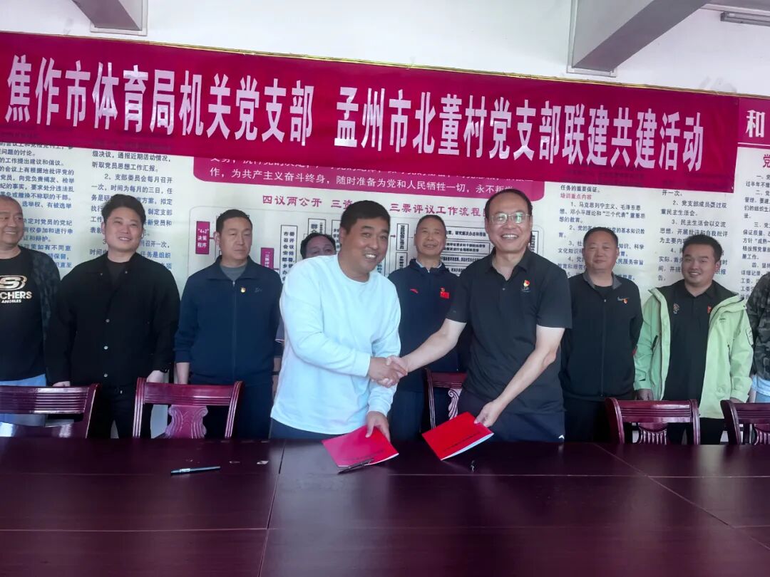 活动期间,市体育局机关党支部与北董村党支部举行了结对共建签约仪式,双方将围绕组织共建、资源共享、产业共育、实事共办、难题共解等方面达成了共识。