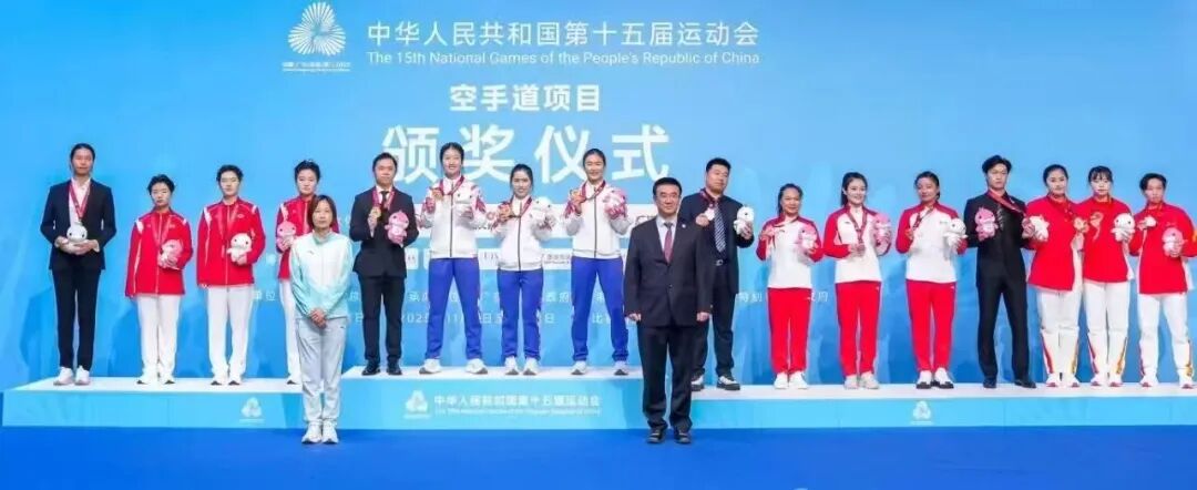 女子空手道团体决赛颁奖现场。