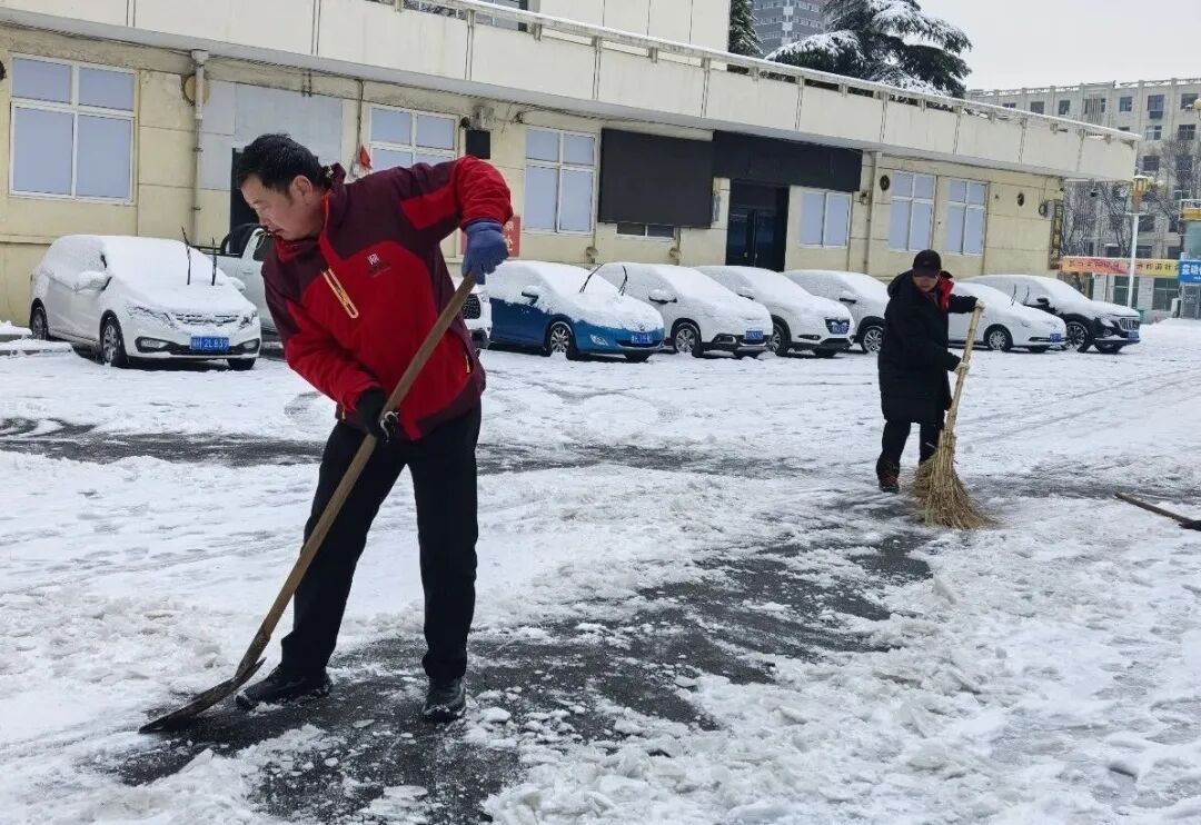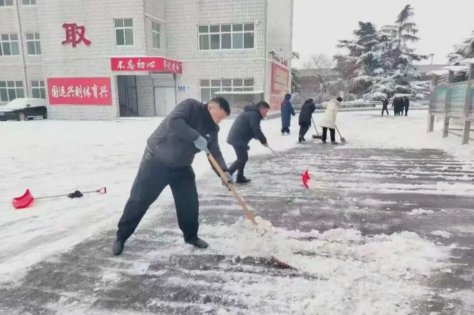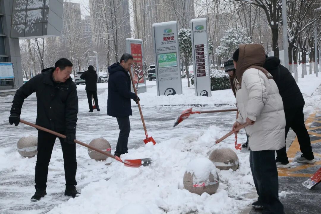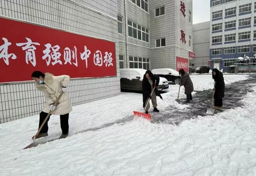 8时许,参与人员分工明确、协作高效,手持铁锹、雪铲、扫帚等工具,重点对两座场馆的主干道、出入口等关键区域积雪开展集中清扫。寒风凛冽中,大家 挥锹铲雪、清除残冰,动作高效有序、干劲十足,充分展现焦作体育人务实担当、能打硬仗的优良作风。