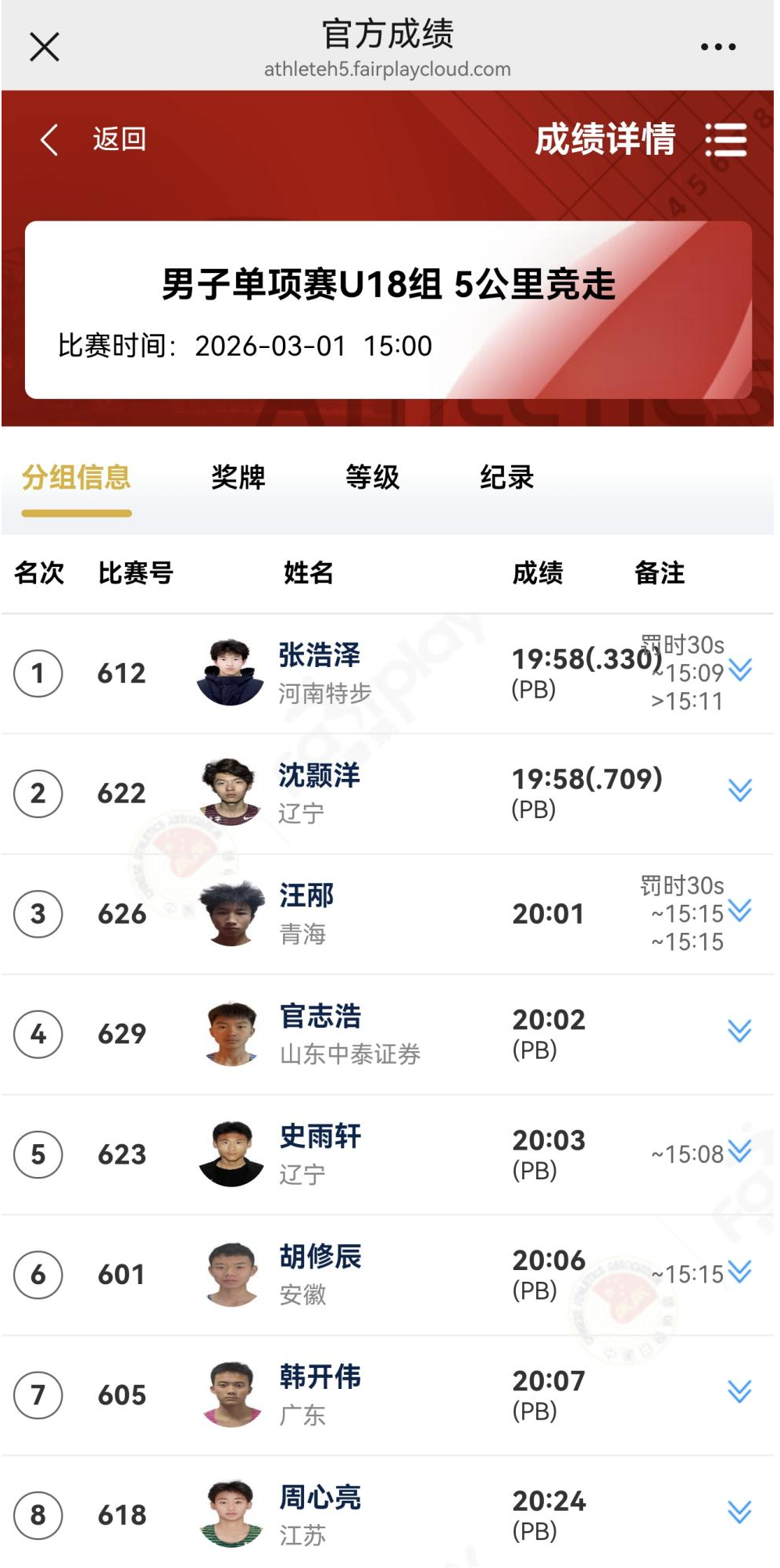 3月1日至2日,2026年世界田联竞走巡回赛暨全国竞走大奖赛暨竞走单项赛(第1站)在江苏省太仓市举办。我市体校运动员张浩泽在男子单项赛U18组10公里和5公里竞走中获得双料冠军。